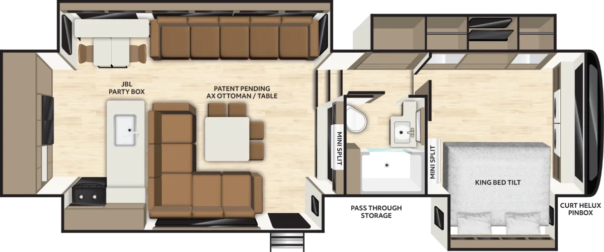 Dual Patios: Rear patio with built-in bar area transforms your campsite into the ultimate entertaining space.